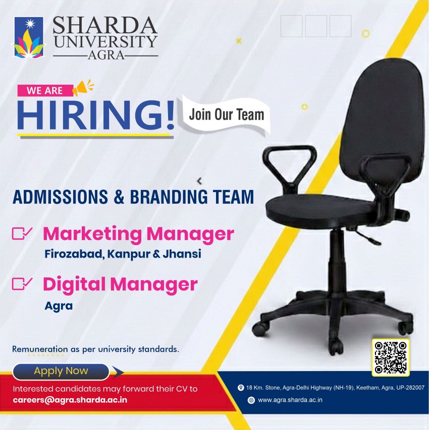 Interested candidates may send their CVs to careers@agra.sharda.ac.in