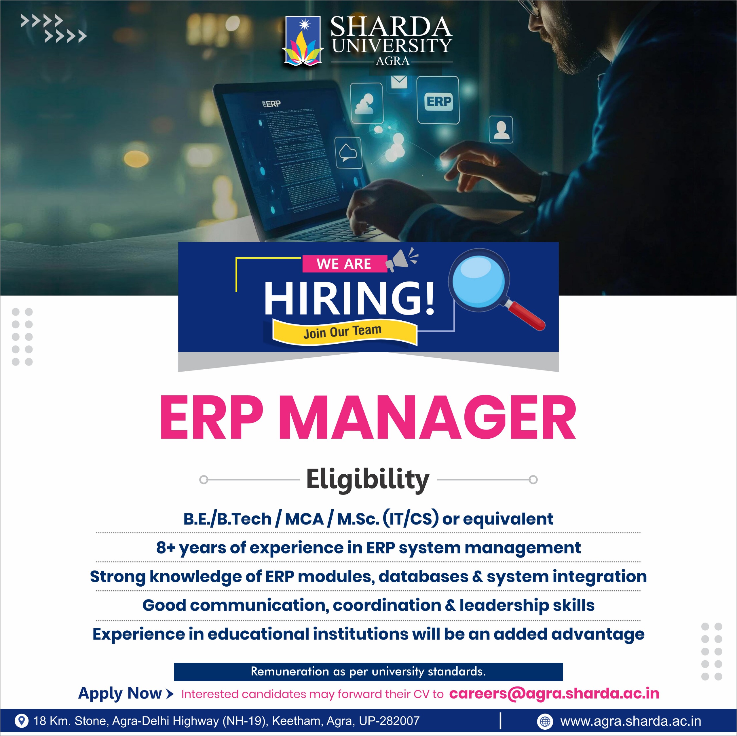 Interested candidates may send their CVs to: careers@agra.sharda.ac.in