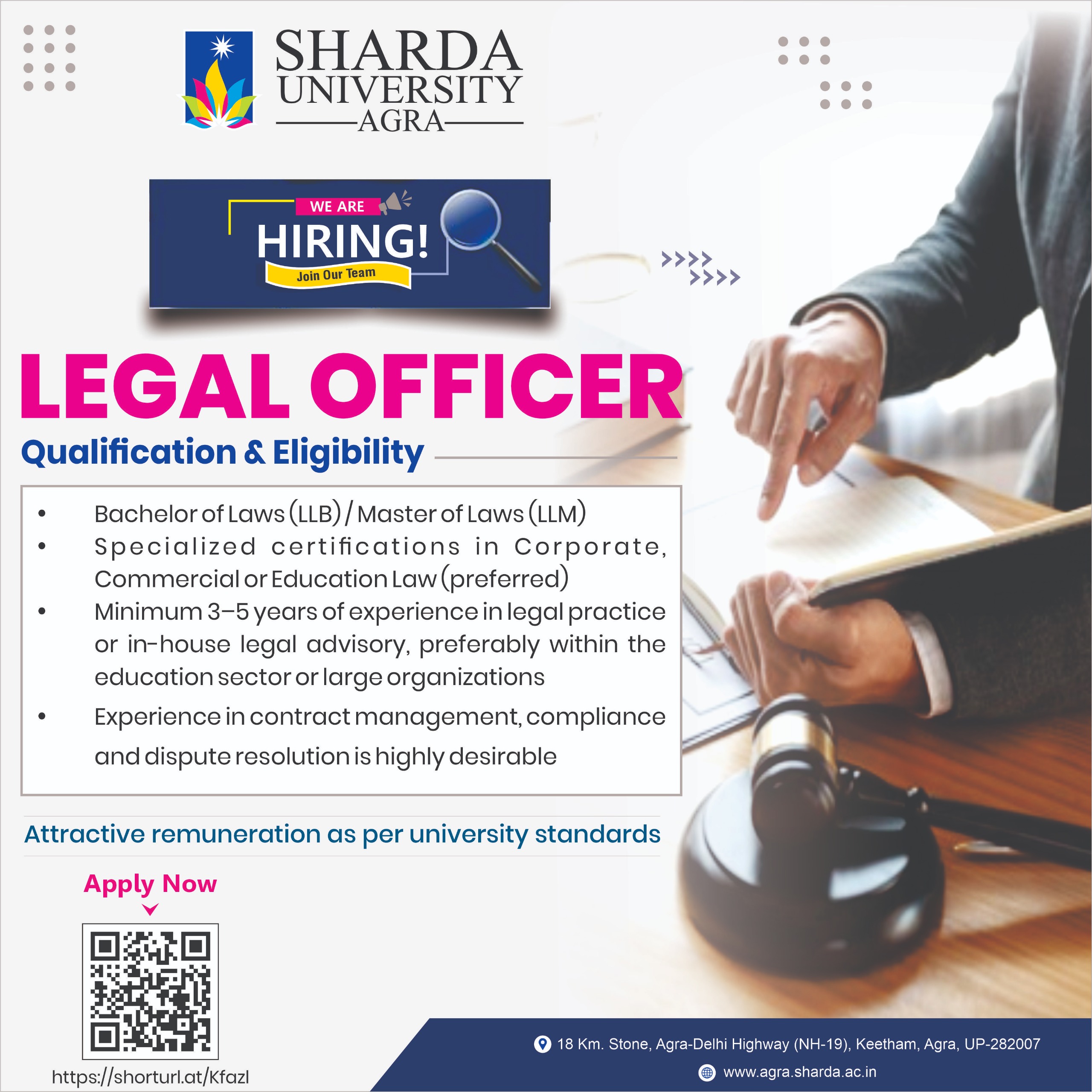 - Minimum 3–5 years of experience in legal practice or in-house legal advisory, preferably within the education sector or large organizations