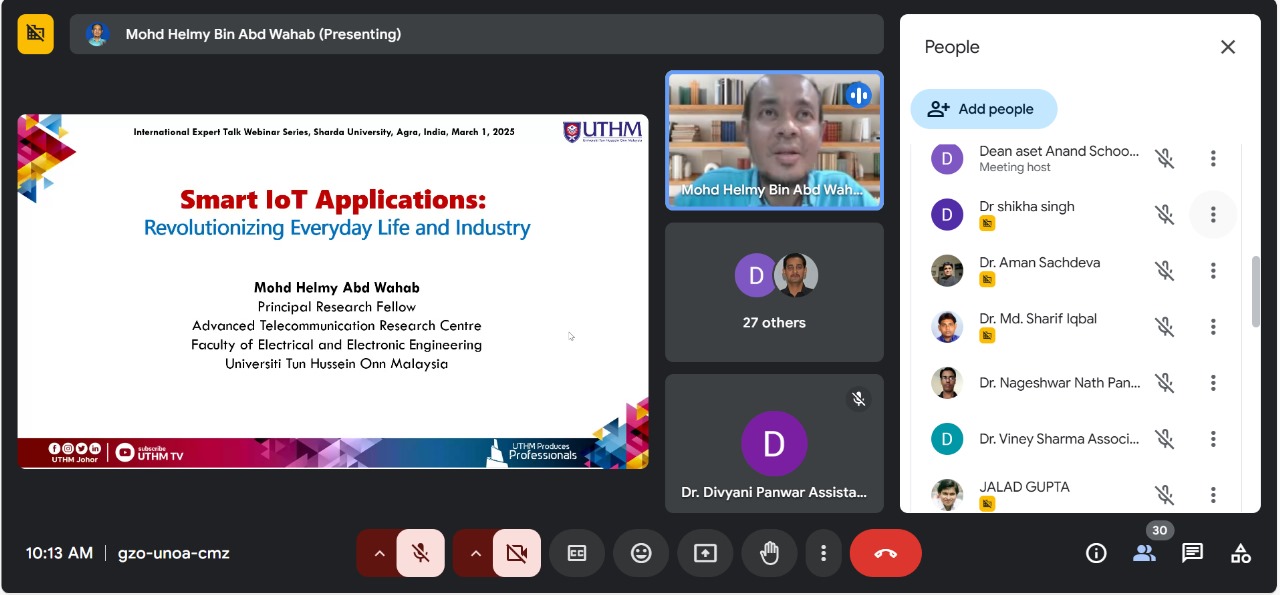Anand School of Engineering and Technology successfully hosted an international expert talk on "Smart IoT Applications: Revolutionizing Everyday Life and Industry" by Dr. Mohd. Helmy Abd Wahab from Universiti Tun Hussein Onn Malaysia, Malaysia. During the session, Dr. Helmy shared his expertise on how Smart IoT Applications are transforming both everyday life and various industries.