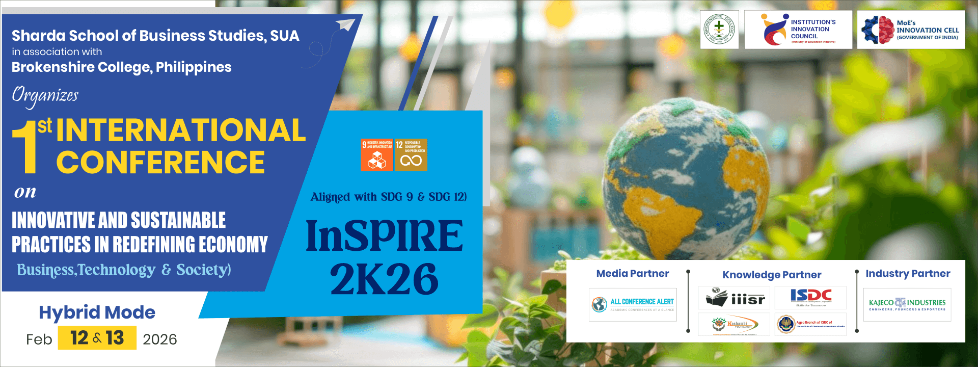 The 1st International Conference on "Innovative & Sustainable Practices in Redefining Economy" (InSPIRE 2K26), scheduled on Feb 12 - 13, 2026 in Hybrid Mode, seeks to bring together academicians, researchers, industry professionals, entrepreneurs, and policymakers to explore the dynamic convergence of innovation and sustainability in driving resilient economies. In today’s rapidly changing world, where businesses face the twin challenges of digital transformation and environmental responsibility, this conference provides a global platform to share insights, exchange ideas, and present research on adopting eco-friendly, ethical, and technologically advanced practices for long-term growth. With engaging keynote addresses, panel discussions, and research presentations, InSPIRE 2K26 aims to foster collaboration across disciplines, encourage actionable solutions, and contribute to shaping inclusive, future-ready, and sustainable business ecosystems.